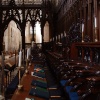 Ely Cathedral is a glorious historical treasure chest. The majestic Norman nave is 208ft long; it's roof, painted in the 19th-century by Artists le Strange and Perry is elaborately beautiful, the South transept also has a magnificent painted roof. In the 13th-century the choir was rebuilt to provide a more worthy setting for the shrine to St.Etherelda and the beautiful Lady Chapel was added to the North transept in the 14th-century. The Norman crossing tower collapsed early in the 14th-century; it was replaced by a larger, elaborate octagonal tower surmounted by a timber vault carrying an octagonal lantern. Unique in the history of medieval English church architecture, this crossing tower is the Cathedrals most characteristic feature. The exterior decoration to the north wall of the nave displays fine 12th century carving. Of the cloister, now destroyed, there remains three 12th-century doorways with carving of exceptional quality and state of preservation, these are thought to be among the finest examples of surviving Norman architecture. There are two very mutilated chantry chapels to the east end of the Cathedral, both show fine carving; one is dedicated to Bishop Alcock d.1501 and the other to Bishop West d.1534 which has early Renaissance motifs.