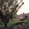 All built of honey coloured Cotswold stone, houses and cottages ramble hap-hazardly along pleasant green-verged roads. Steep gables of the larger houses rise high above the roofline of the dormer-windowed cottages and here and there black and white thatched roof cottages help to soften the bluffness of weathered stone dwellings.