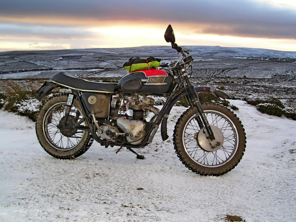 The bike club I'm in meets at the High Force Hotel at Middleton-in-Teesdale most Boxing Days. In 2004 it was snowing and here I am just up the hill from Stanhope on my way home. Langdom Common, Teesdale, is on the horizon. It was a tad chilly in 2004.