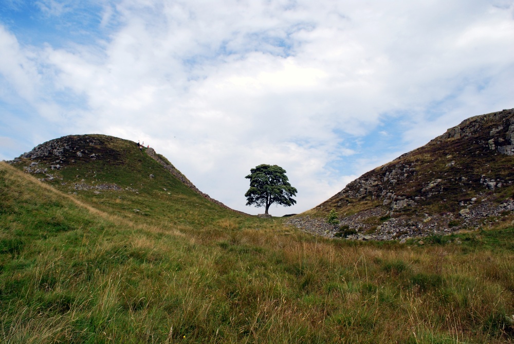 Sycamore Gap is a famous landmark along Hadrian's Wall - a famous wall in the north of England built by the Romans. The gap is a dip in the landscape caused by melting glacial waters underneath the sheet ice that once covered the area thousands of years ago.