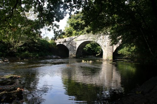 A picturesque stone bridge crosses the River Lyd just south of the village of Lydford. At this point the river often falls fast.....