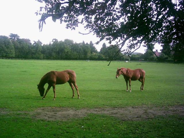 Two horses in a nearby field