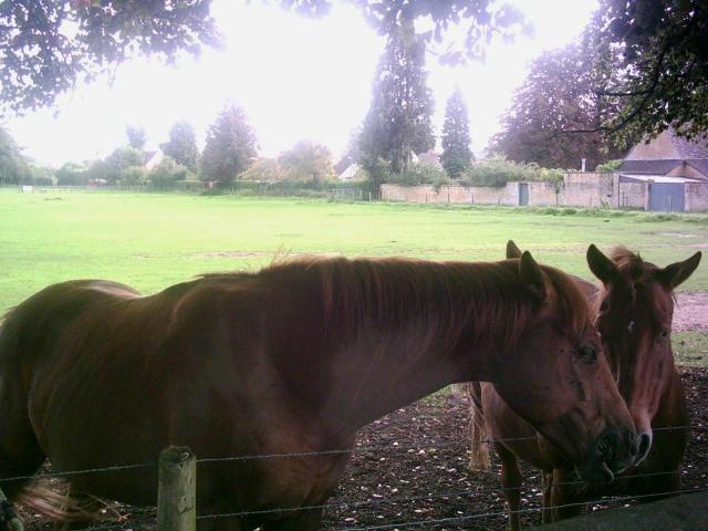 Two horses in a nearby field