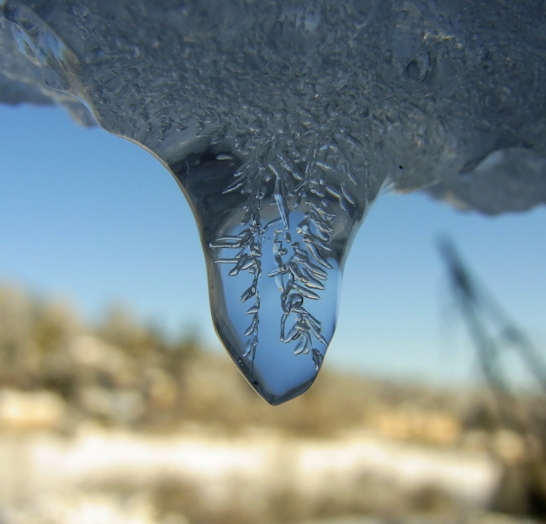Tilt your head to your right shoulder. Upper right are two eyes. Upper left is a mouth. The interesting icicle is the ice man's nose.