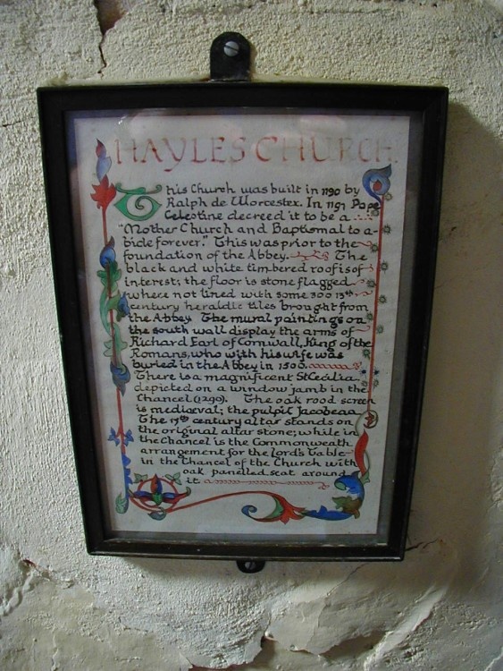 Plaque detailing history of Hayles Church