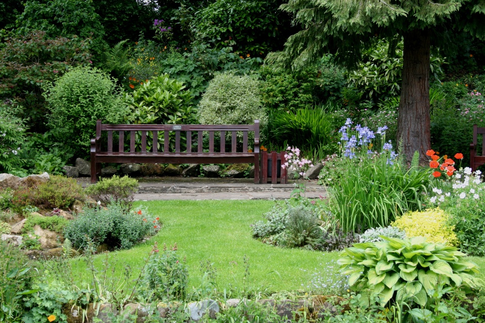 One of the many benches in Coronation Gardens at Waddington, in Lancashire.