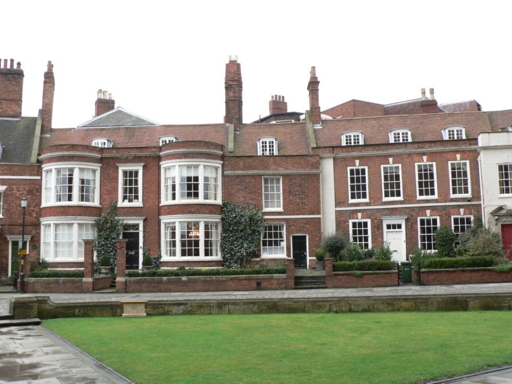 Houses opposite the West front of Lincoln Cathedral.  What a view to wake up to each morning!