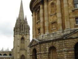 Heading back to the hustle and bustle, follow the A40 east to Oxford itself and yet another St Mary. The University Church of St Mary, which stands in the centre of the old walled city, has only been standing since the 13th century - the tower, dating from 1280 is the oldest part of the existing church - but it's believed that a church has been on that site since about 600 years before then. The tower is intricately decorated, much of the decorative carving being added early in the 14th century, and the views over Oxford from the top (if you can manage the 124-step climb) are enhanced by the chance to see some of the carvings close up. The other most decorative part of St Mary's is the 17th century Virgin Porch, famous for its barley-sugar-shaped spiral columns, and the statue of the Virgin and Child above the door - the bullet holes made by Cromwell's troops are still visible.