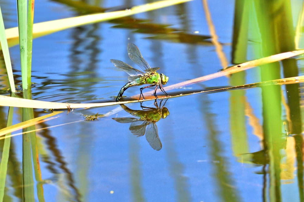 Female Emperor (Anax Imperator) with Reflection, Ovipositing on Littleworth Common - by Alan Whitehead ©