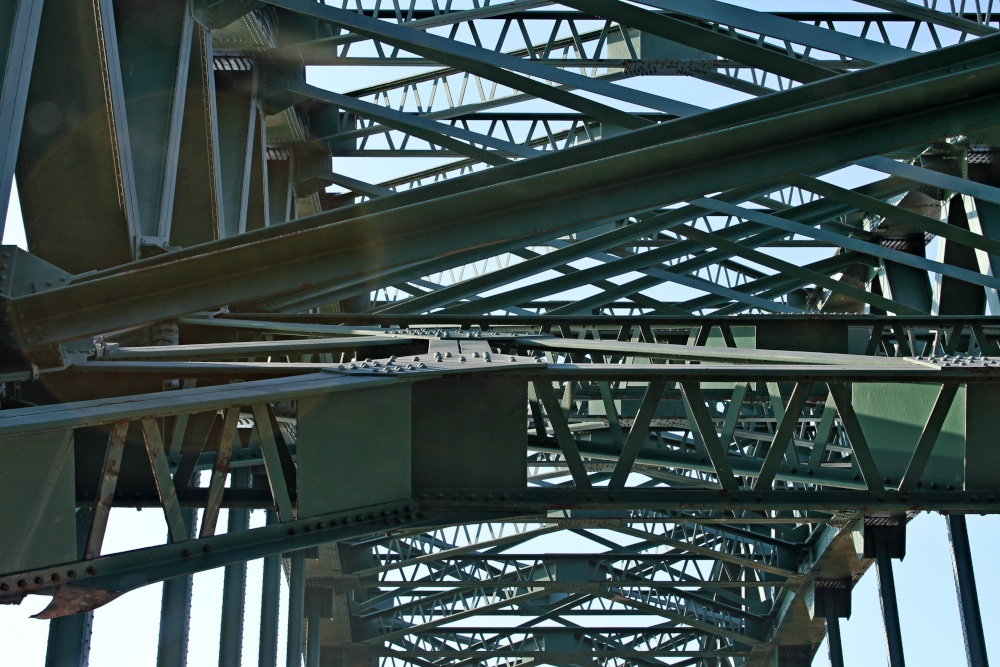 As the Tyne Bridge (opened in 1928) is crossed, if you look upwards, you see a mass of girders, rivets and the angles of its structure. An amazing zig-zag of design, built for strength by Dorman Long - the same firm that built the Sydney Harbour Bridge (opened in 1932).