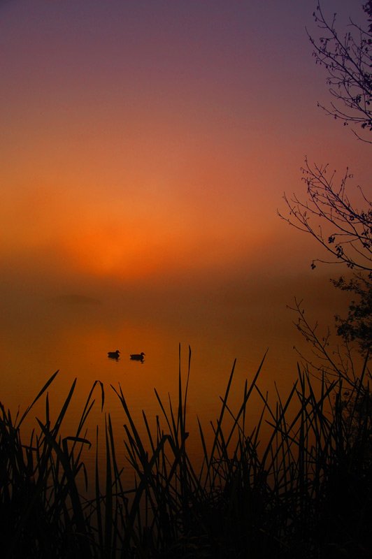 A hazy sunrise, Kingsbury water park, near to the Birmingham Fazeley canal.