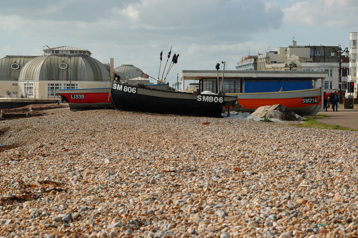 Boats hauled up on Worthing beach ready for the next day