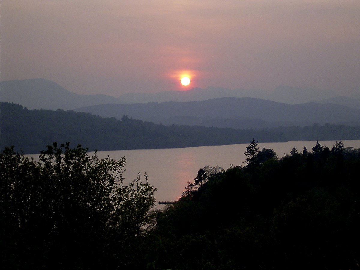 Windermere sunset from scanned image taken 1995 with Zenith TTL 35 mm film camera.