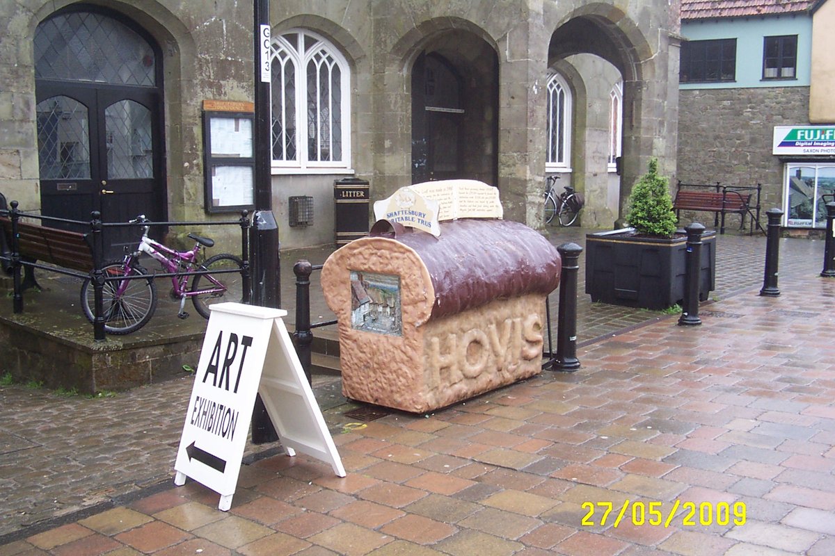 This huge loaf of bread stands at the entrance to the alleyway, which leads to Gold Hill and is used to collect money for charity - Sue Tym (photographer)