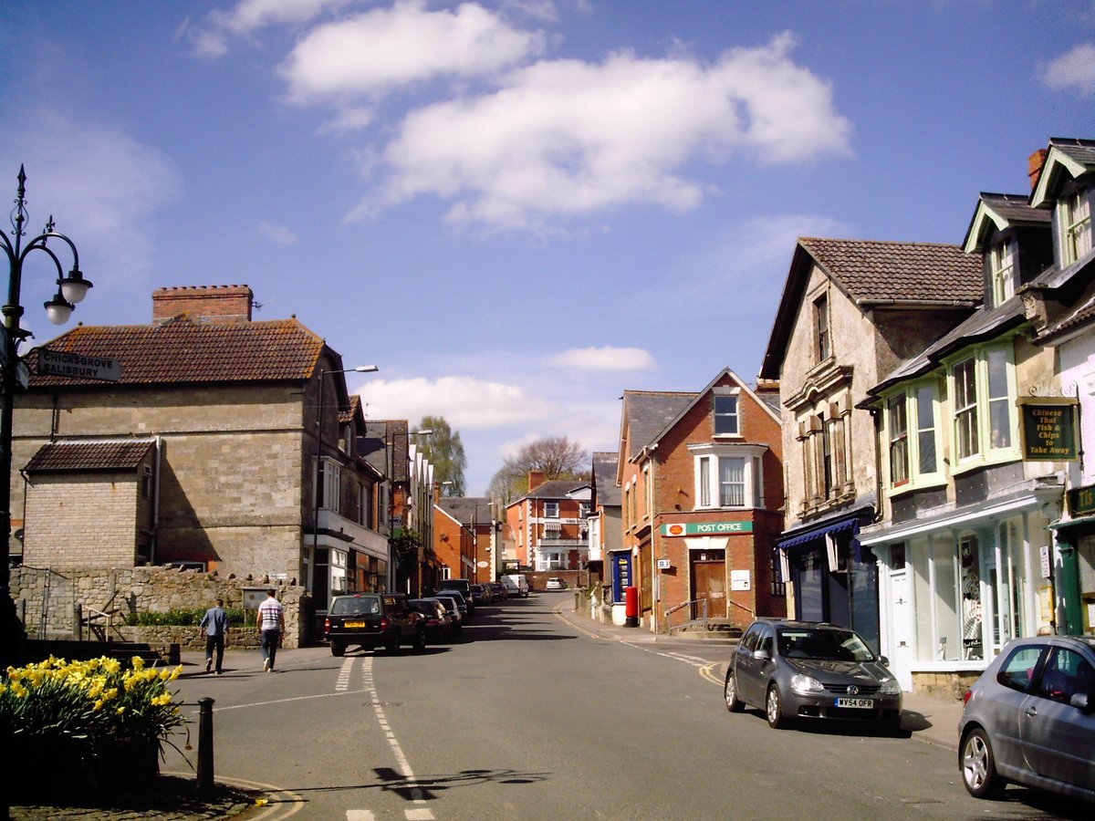 Tisbury High Street on a sunny spring afternoon
