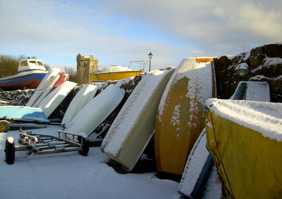 Snow covered boats Dysart Harbour. 3.1.2010.