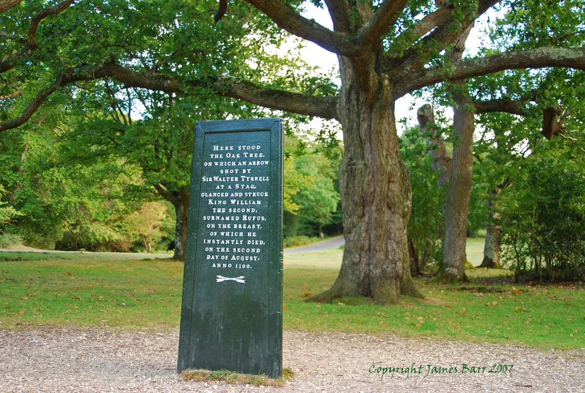 On August 2nd 1100 William was part of a hunting party in the New Forest and at one point found himself alone with Sir Walter Tyrrell. It is said an arrow fired by Tyrrell at a stag, glanced off an oak tree and struck Rufus “on the breast of which he instantly died”.